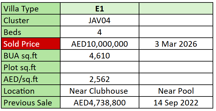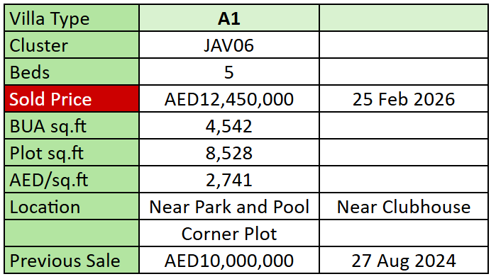 Resales of Villas at Jebel Ali Village since 1st January 2026
