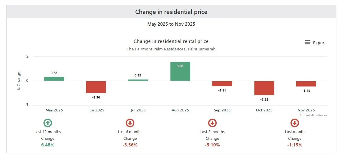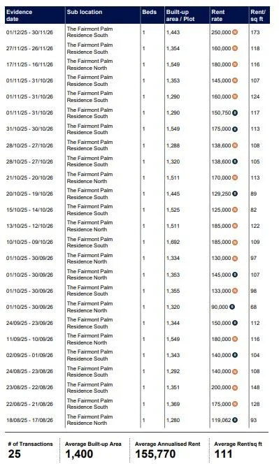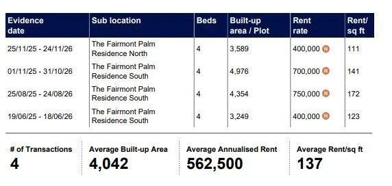 During the past year, the overall rental growth at Fairmont Residences has been better than the average for the communities within Palm Jumeirah, but it has levelled off since May.