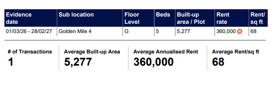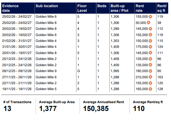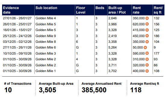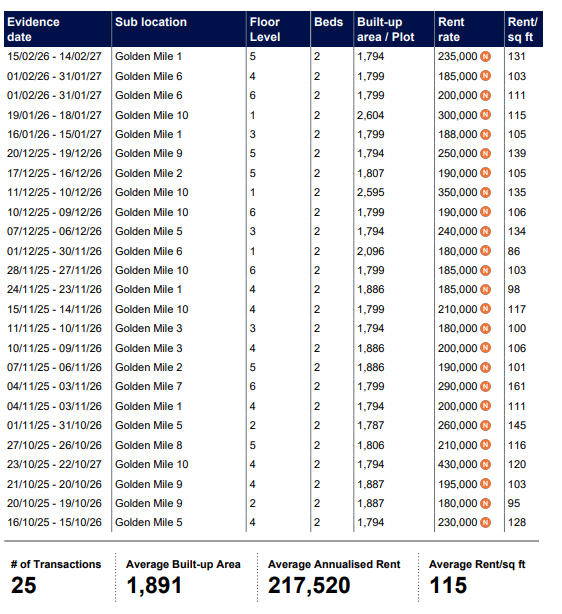 Rents Agreed and Market Trends in Golden Mile, Palm Jumeirah.