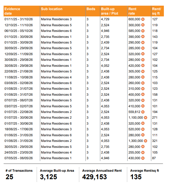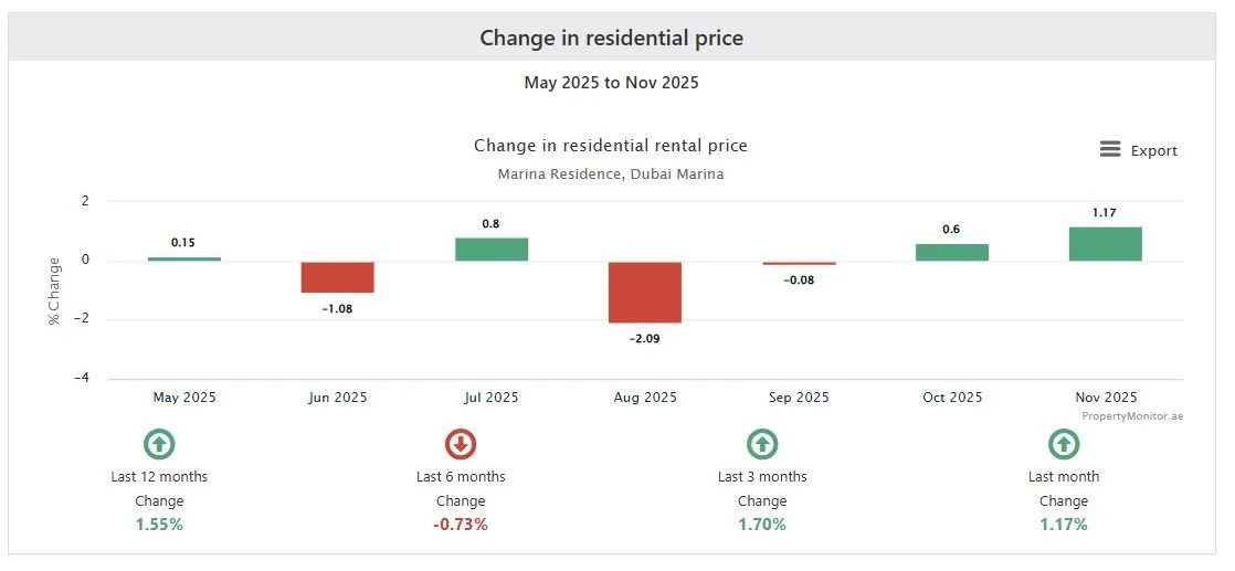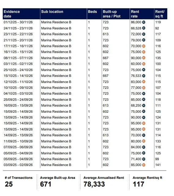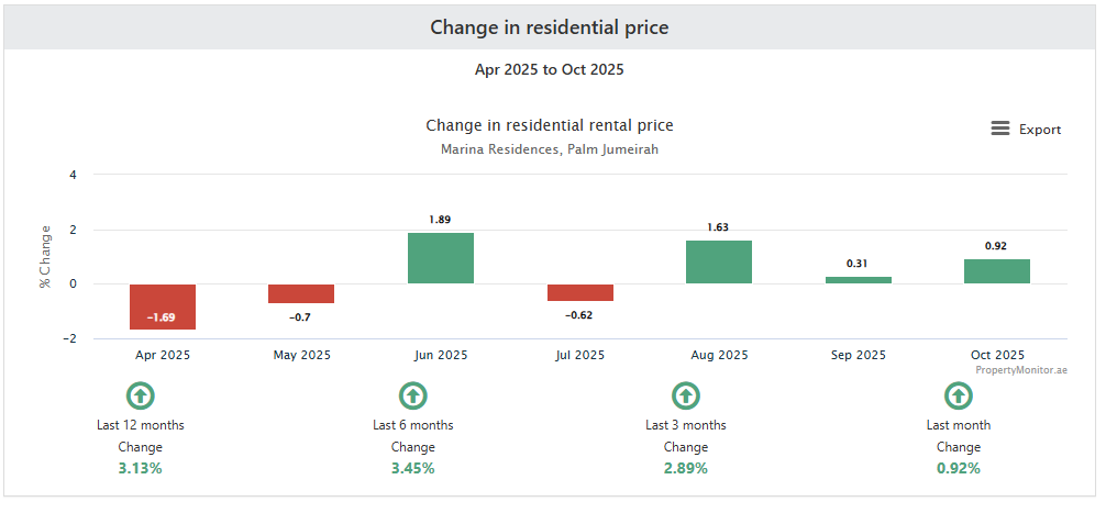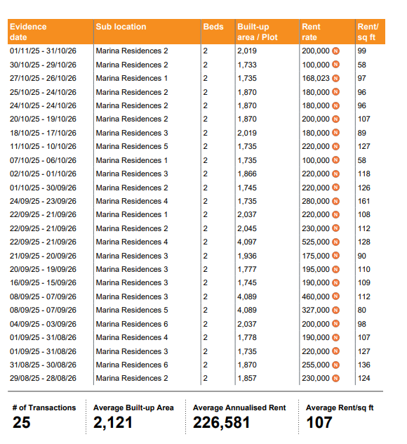Rents Agreed and Market Trends at Marina Residences, Palm Jumeirah