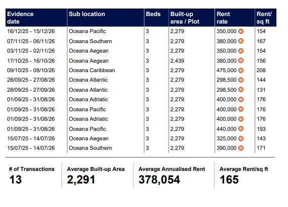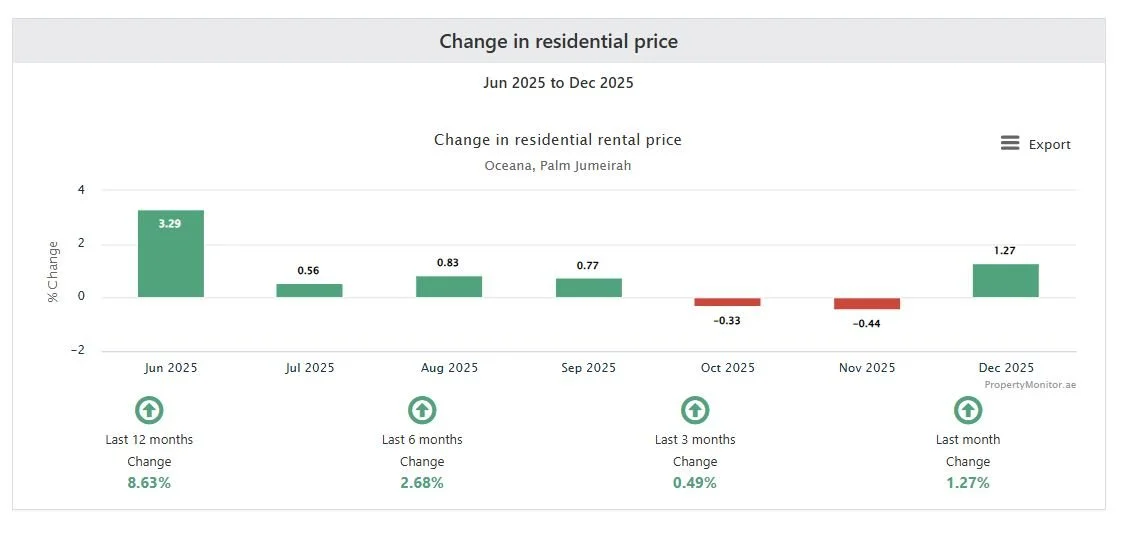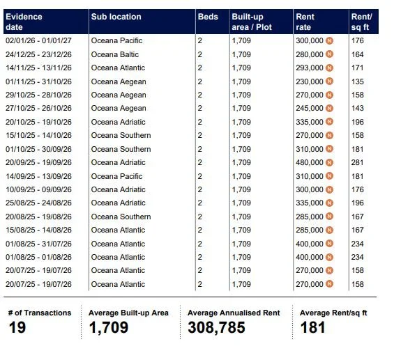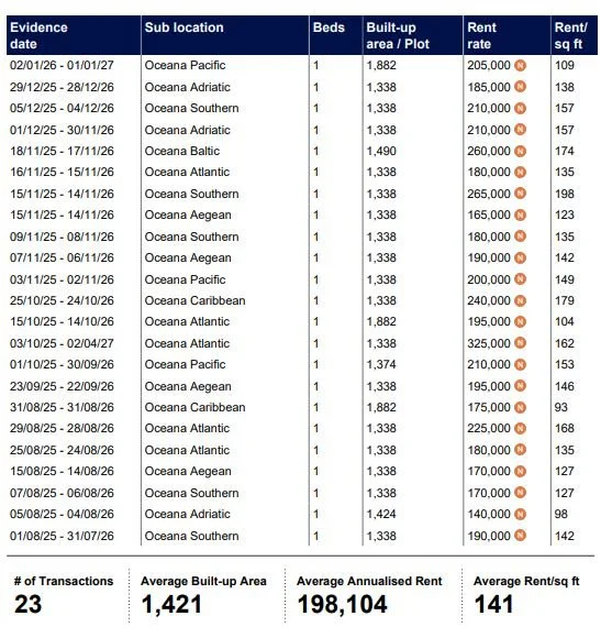 Rents Agreed and Market Trends at Oceana, Palm Jumeirah.