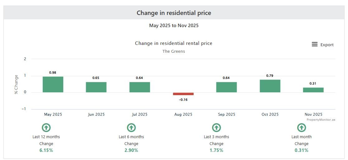 The rate of growth for rents at the Greens has increased by 6.15% during the past year.