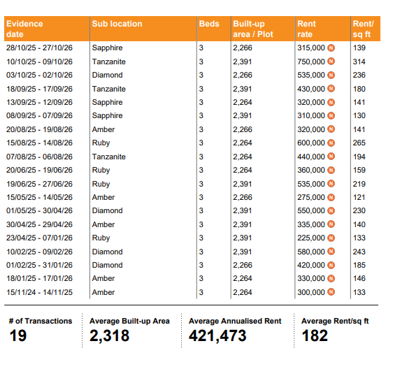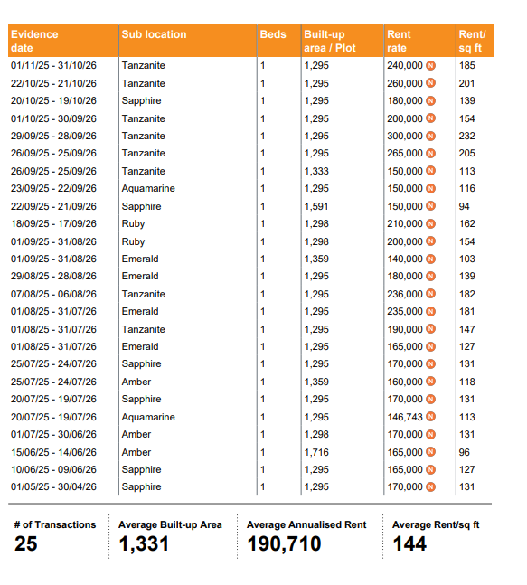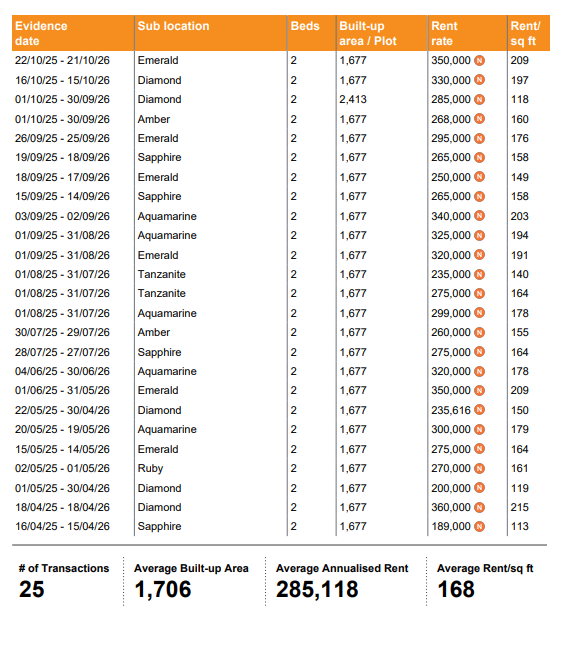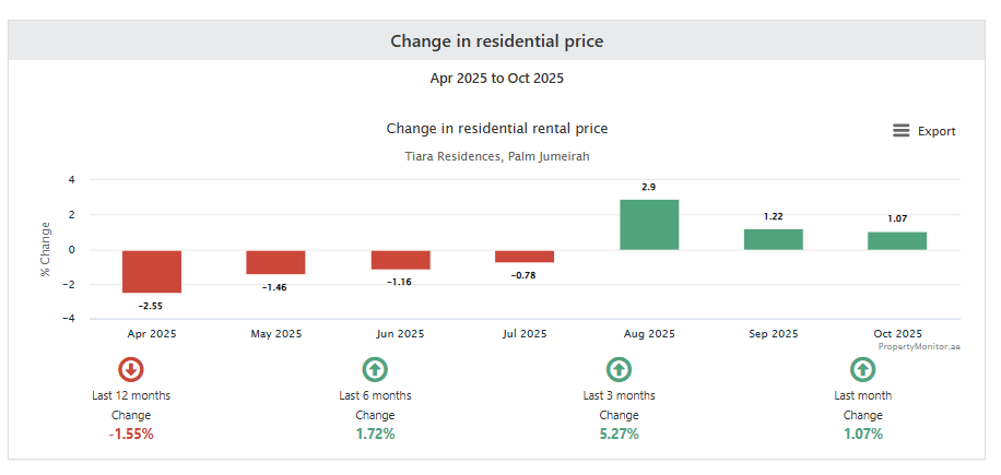 The rental growth at Tiara Residences slowed-down over the past twelve months and is similar to the average for the communities within Palm Jumeirah.