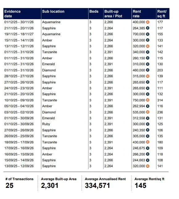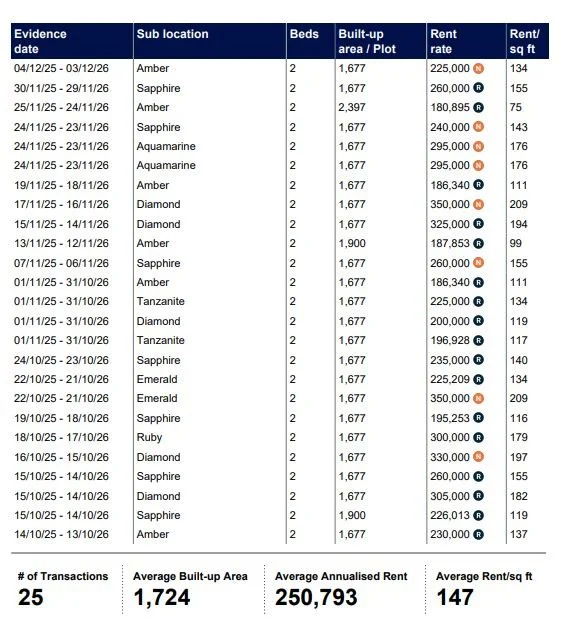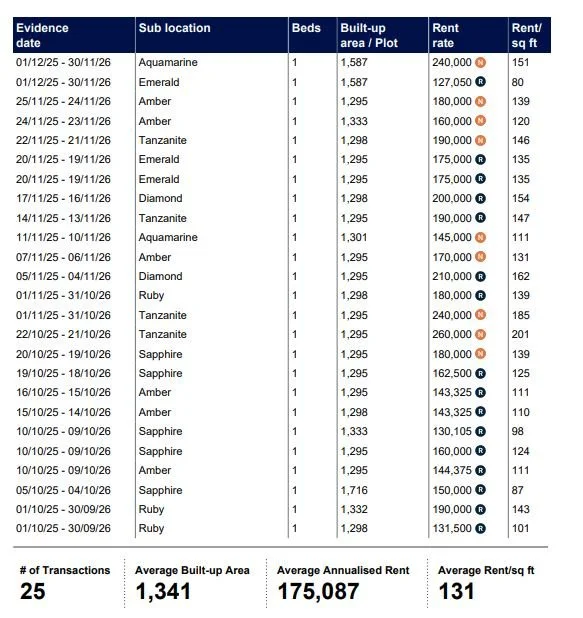 The rental growth at Tiara Residences slowed-down over the past twelve months with negative growth up to late July but a positive growth since then. This is similar to the pattern for most of the communities within Palm Jumeirah.