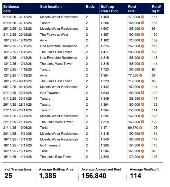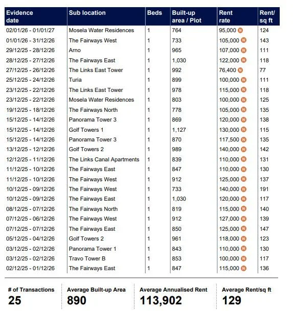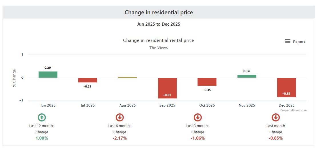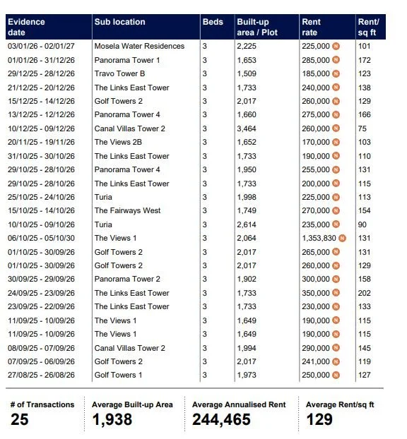 Rents Agreed for new Tenancies at The Views, Dubai.