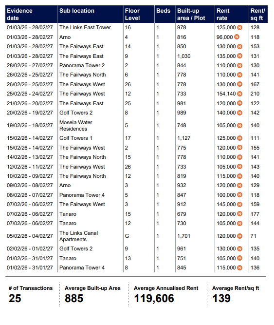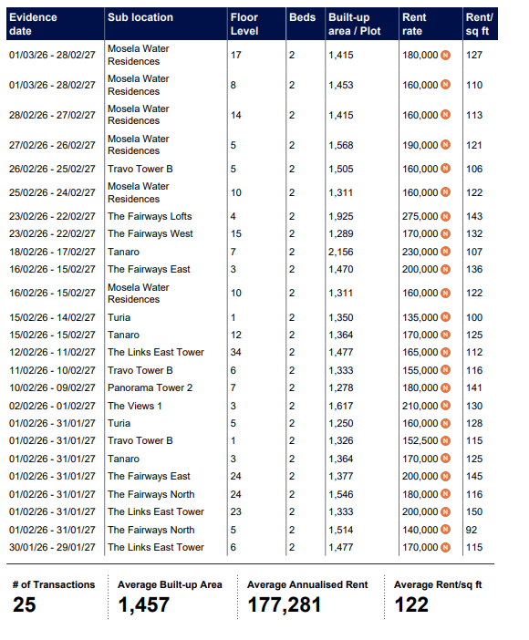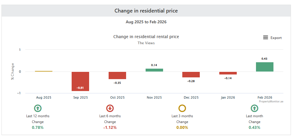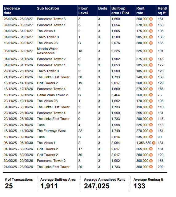 The Views Dubai - Rents Agreed - Market Trends