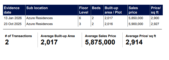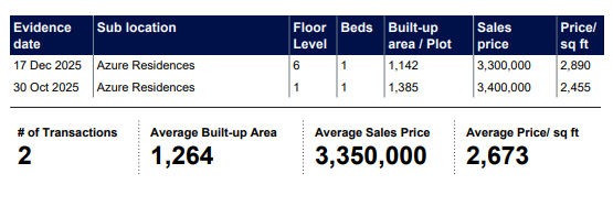 Graph: Azure Residences : Sold Price Growth (AED/sq.ft)