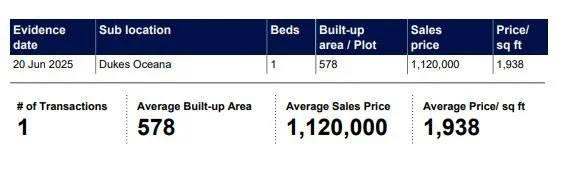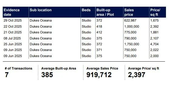 There was a bulk sale of 6 studios during September which sold at AED 1,000,000 each and were significantly above the general trend of sale prices during the past 12 months.