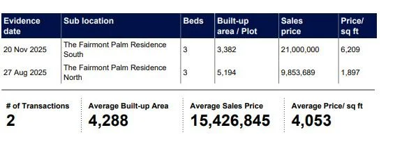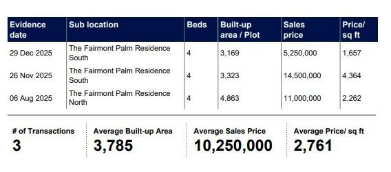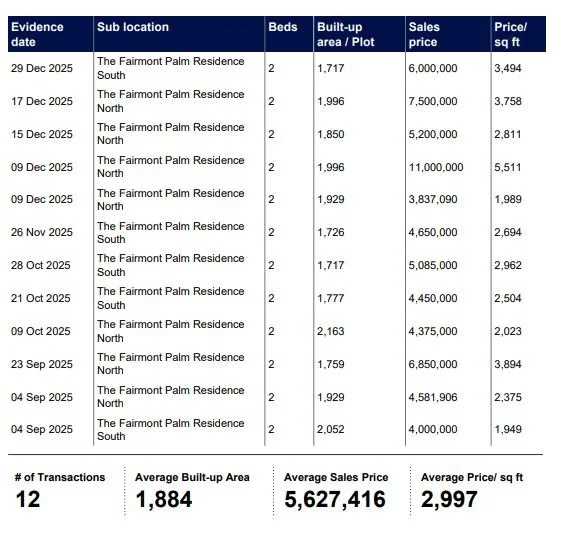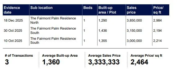 The Fairmont Sold Prices have increased by 11.95% in terms of AED/sq.ft during the past 3 months, following a period of negative growth in H1 of 2025.
