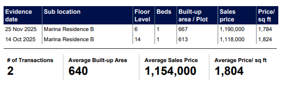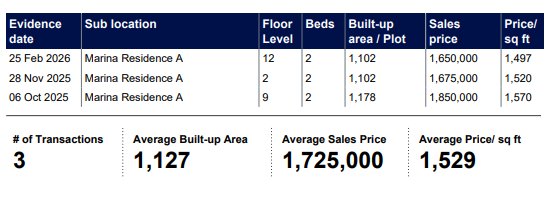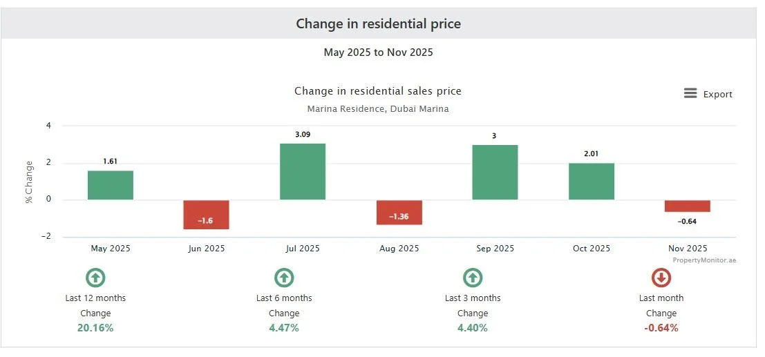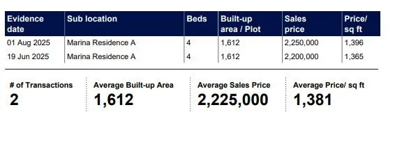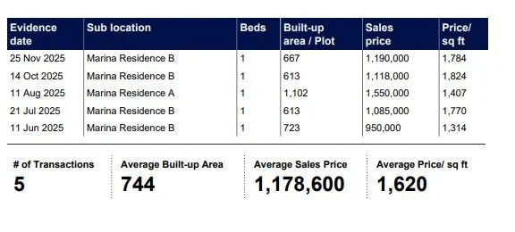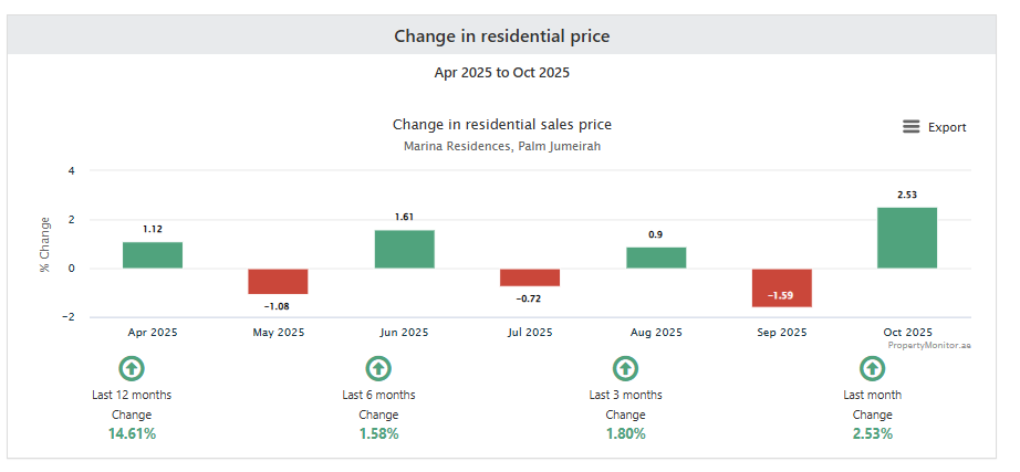 Sold Prices and Market Trends at Marina Residences, Palm Jumeirah