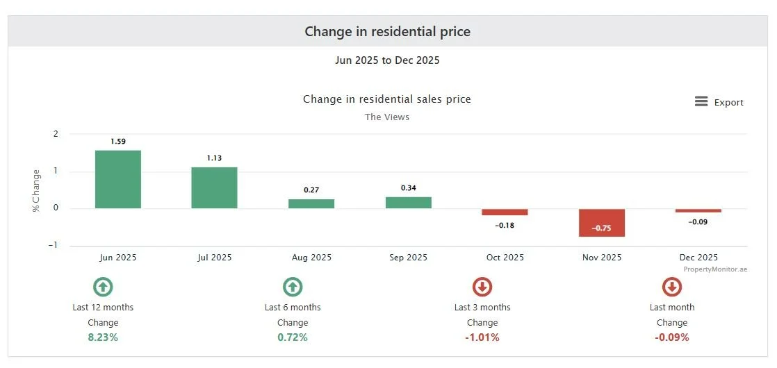The average sold price The Views community has decreased by -1.01% during the past 3 months. There is evidence in many communities of the resale market growth having slowed or leveled out during the second half of 2025.