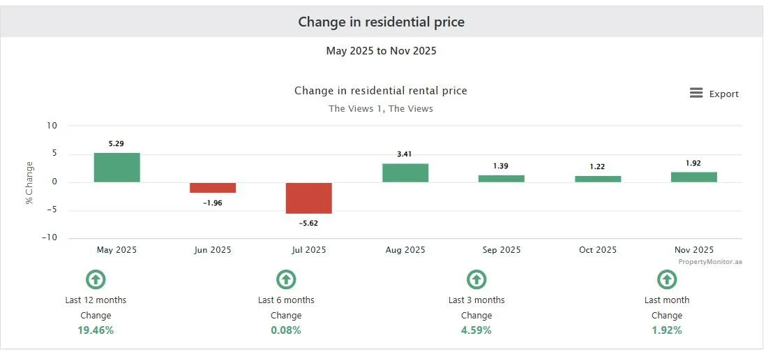 The Views 1 & 2 maintains competitive AED/sqft rates, providing a good entry point for investors seeking stability.