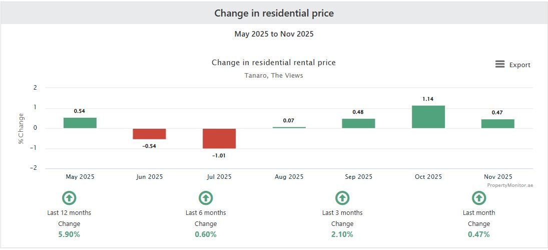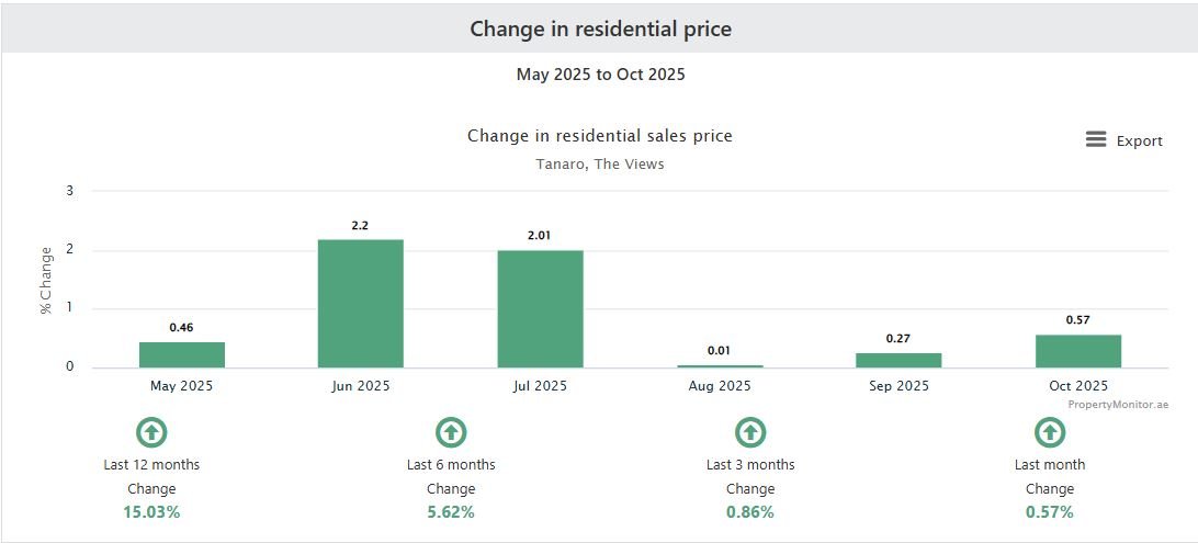 Tanaro in The Views Dubai is a premium high-rise building offering modern layouts, bright apartments, and scenic views. Based on sales and rental data from the last six months, Tanaro demonstrates strong capital appreciation, consistent rental demand, and excellent investment potential, making it ideal for both buyers and investors.